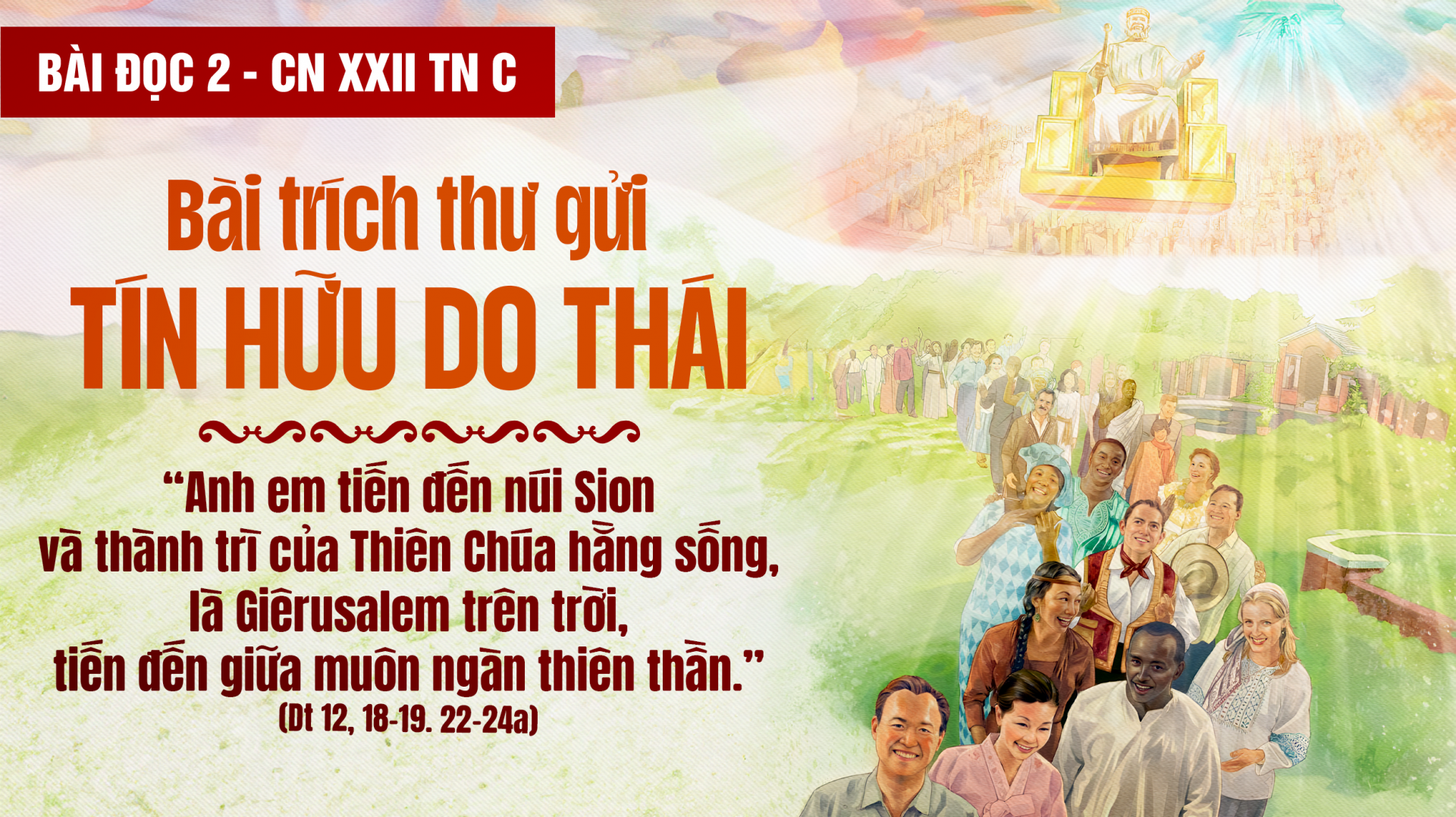 22 Nhưng anh em đã tới núi Xi-on, tới thành đô Thiên Chúa hằng sống, là Giê-ru-sa-lem trên trời, với con số muôn vàn thiên sứ. Anh em đã tới dự hội vui, 23 dự đại hội giữa các con đầu lòng của Thiên Chúa, là những kẻ đã được ghi tên trên trời. Anh em đã tới cùng Thiên Chúa, Đấng xét xử mọi người, đến với linh hồn những người công chính đã được nên hoàn thiện. 24a Anh em đã tới cùng vị Trung Gian giao ước mới là Đức Giê-su.
