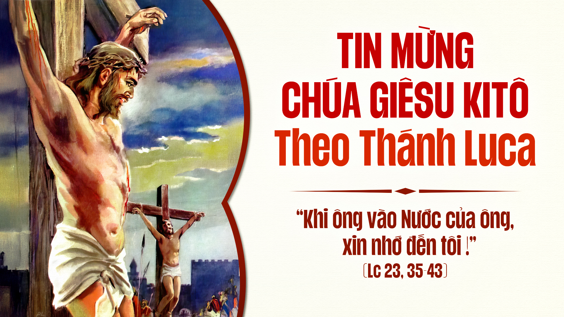 - Tin Mừng: Lúc Chúa Giêsu bị đóng đinh trên thập giá chính là lúc Ngài lên ngôi làm vua, ban ơn cứu độ cho tất cả mọi người.