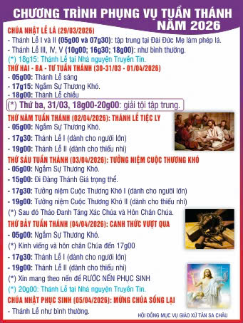 TỔNG HỢP CHƯƠNG TRÌNH PHỤNG VỤ TUẦN THÁNH NĂM 2026 TẠI GIÁO XỨ TÂN SA CHÂU
